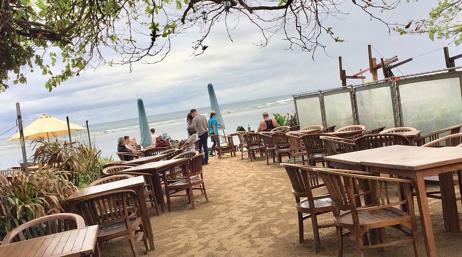 Suasana santai semakin terasa dengan tata letak kafe yang terbuka, memungkinkan pengunjung menikmati angin laut dan suara deburan ombak. Area outdoor yang langsung menghadap pantai memberikan pengalaman bersantai yang menyatu dengan alam. Beberapa gazebo tradisional (bale) disediakan bagi pengunjung yang ingin menikmati privasi atau suasana lebih tenang.